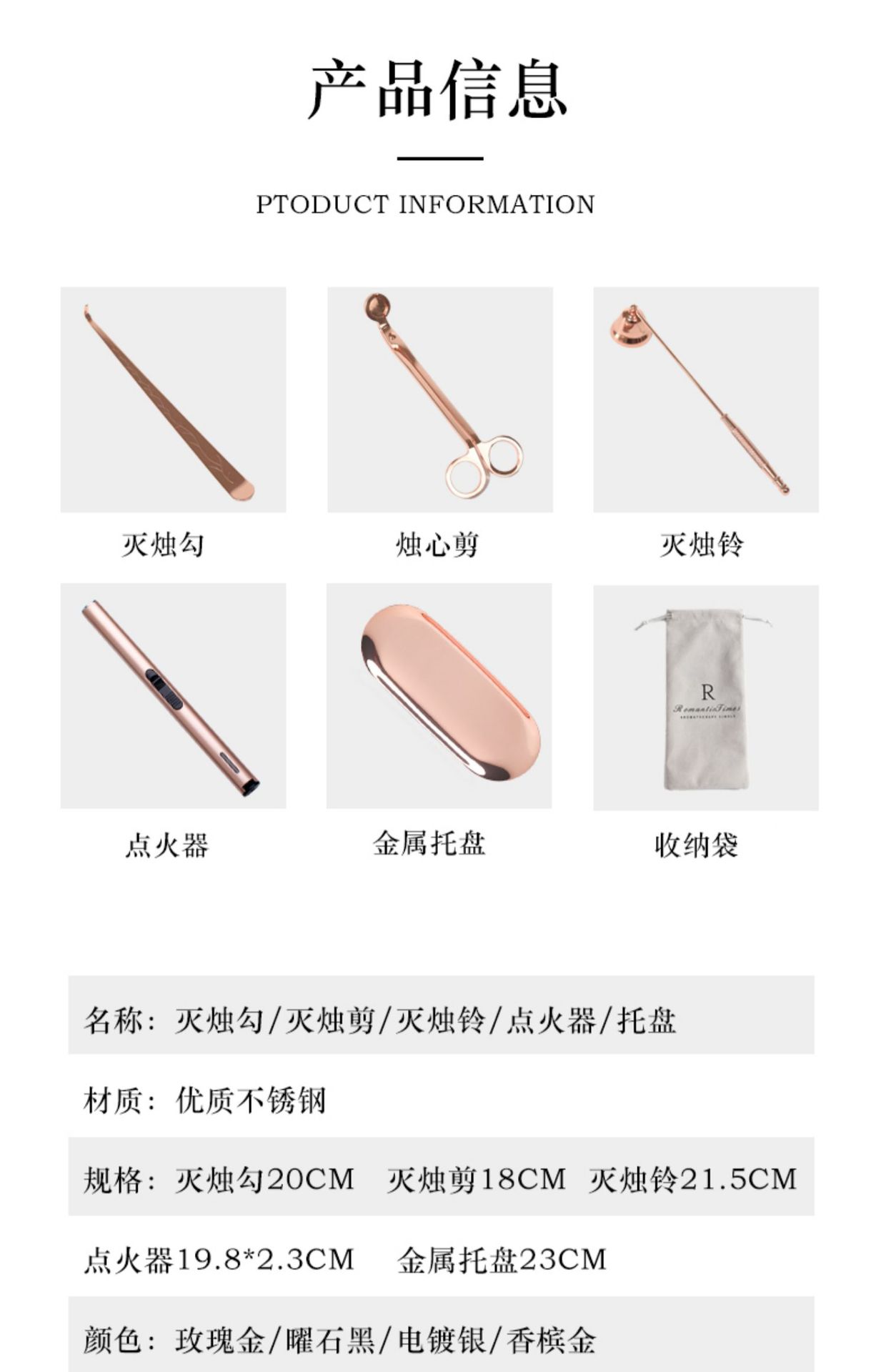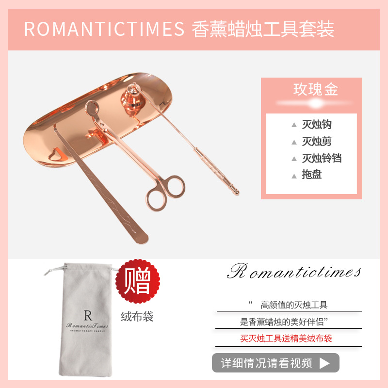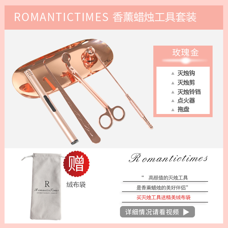 {scissors + hook + cover + inflatable igniter + tray} rose gold get flannel bag-other incense