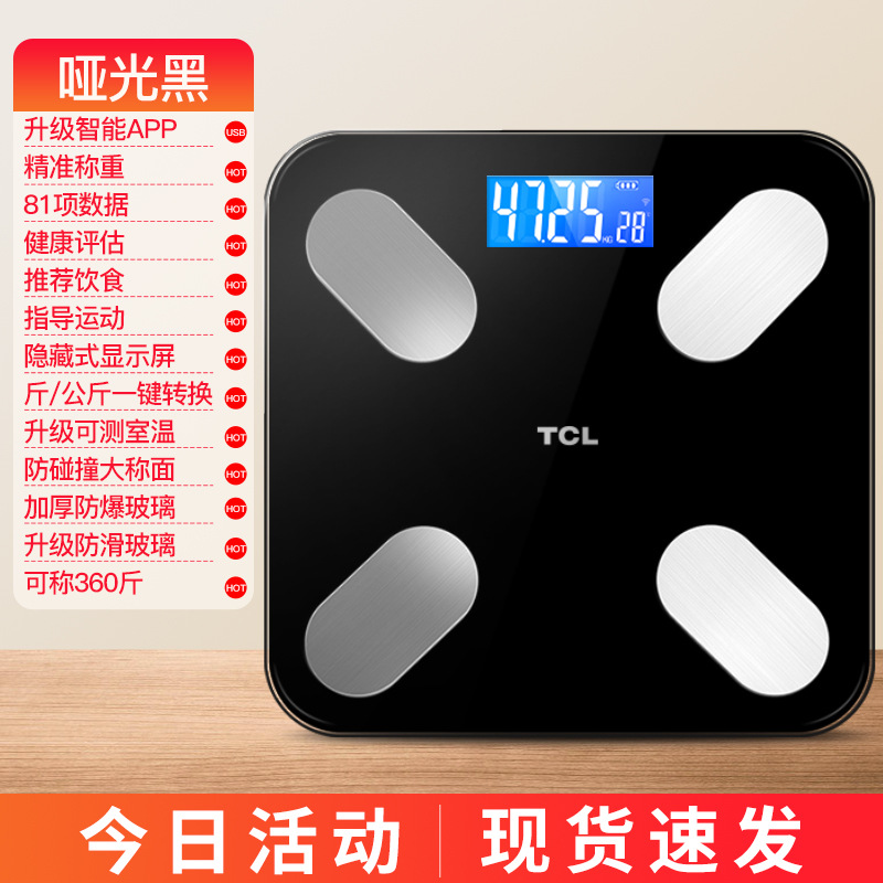 [tcl genuine goods body fat scale]-v2-s rechargeable usb-black-display screen-enterprise gift collection is more favorable