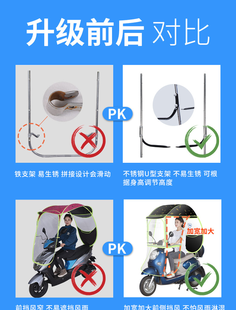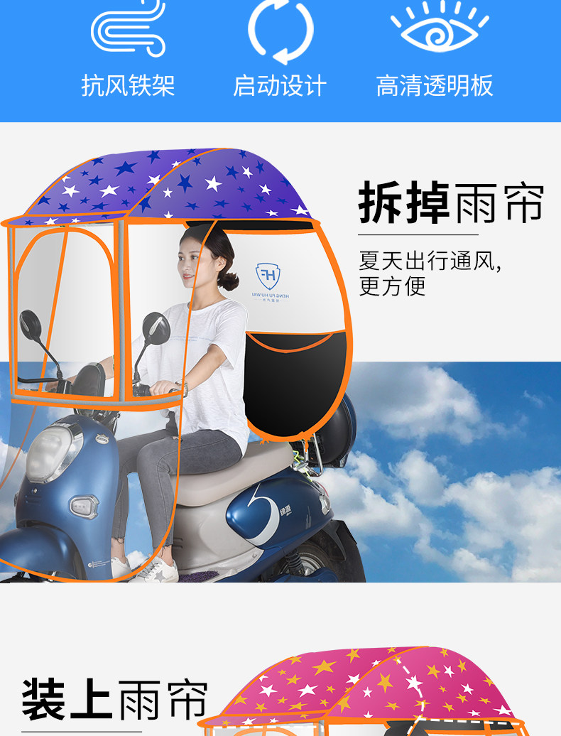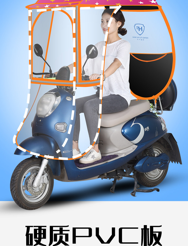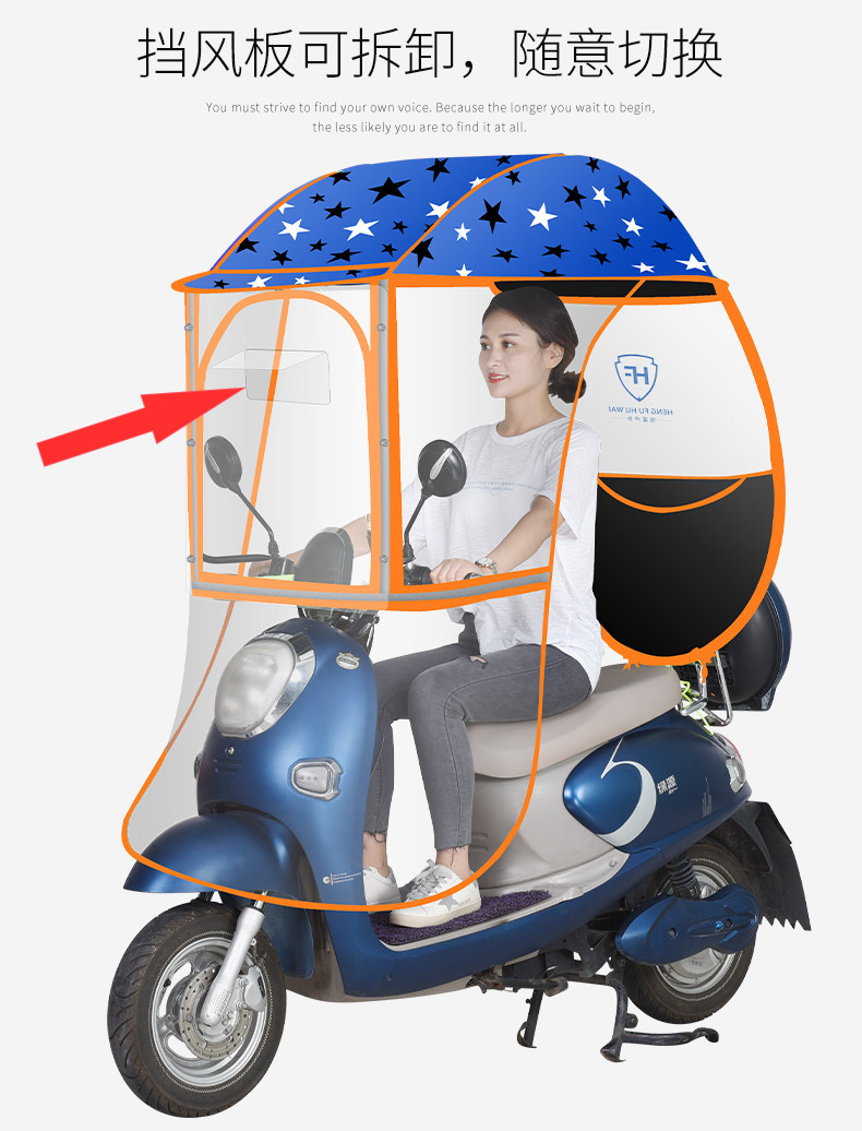 large window + detachable hard block + [fully enclosed] [blue xingx] [with rearview mirror]]