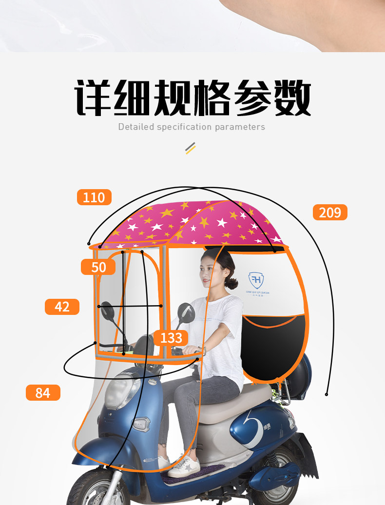 large window + detachable hard block + [fully enclosed] [black xingx] [with rearview mirror]]