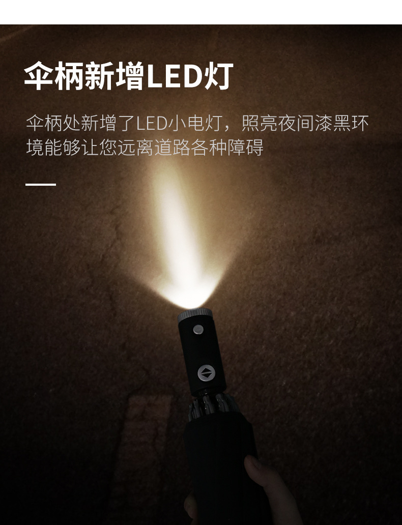 12-bone upgraded model with led light-business black (dual-use for rain and rain) 108cm