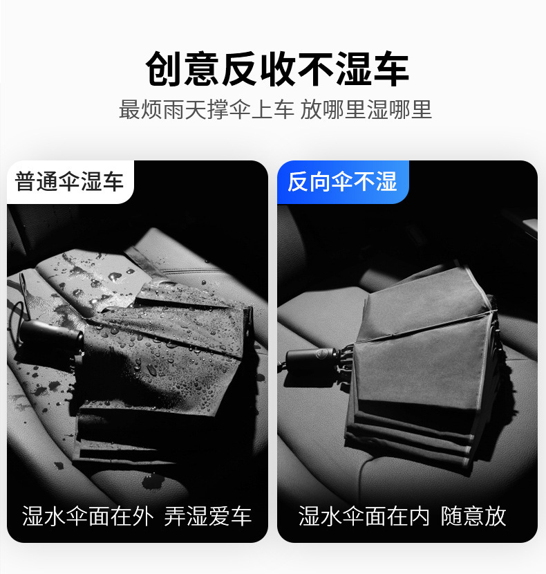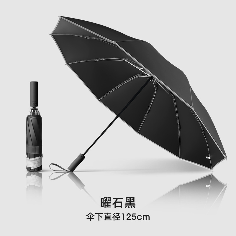 125cm automatic reverse umbrella (both sunny and rainy)-obsidian black fiber skeleton
