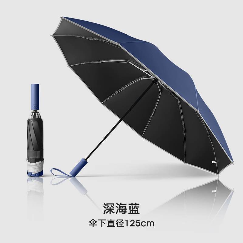 125cm automatic reverse umbrella (both sunny and rainy)-deep sea blue fiber skeleton