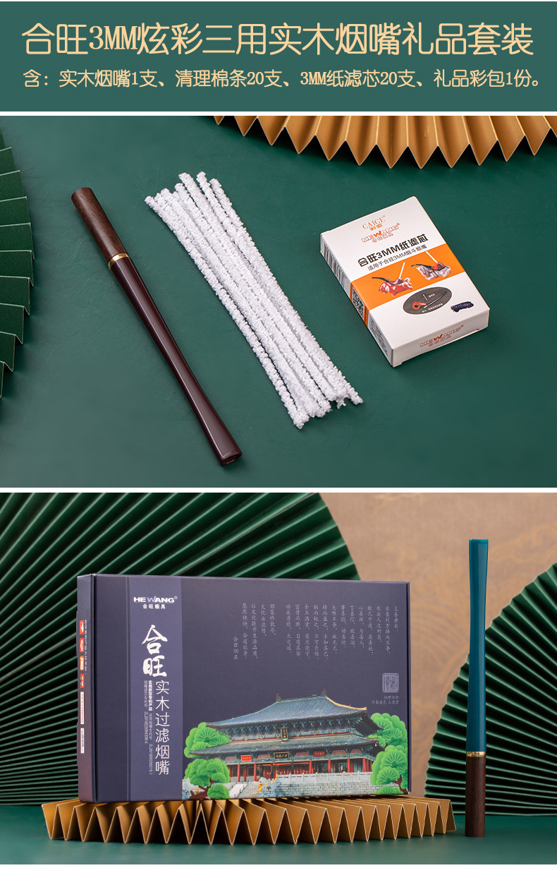 national style dark green-3mm solid wood cigarette holder suit
