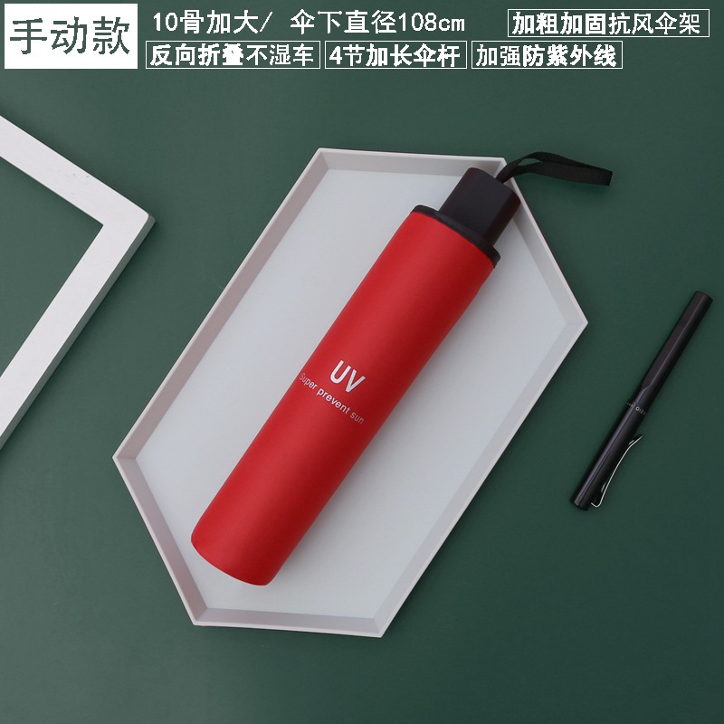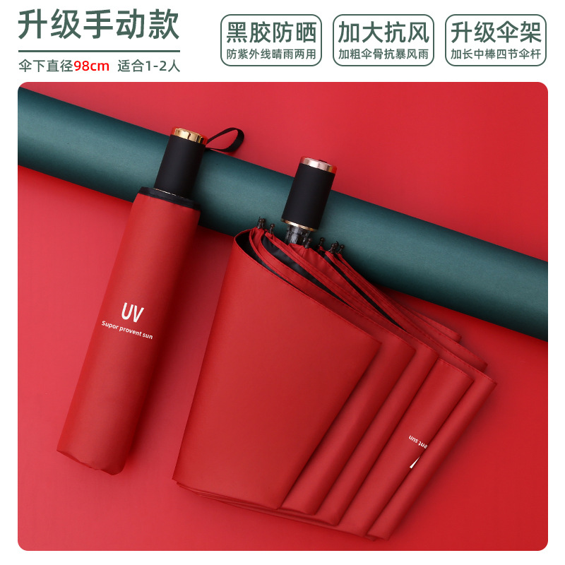 8-bone manual umbrella, sunny and rainy dual-use collection, wine red uv