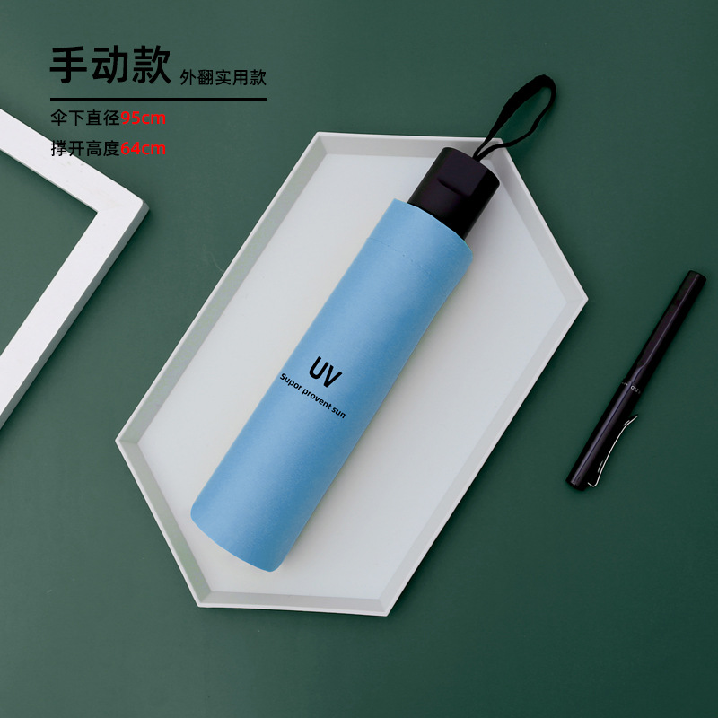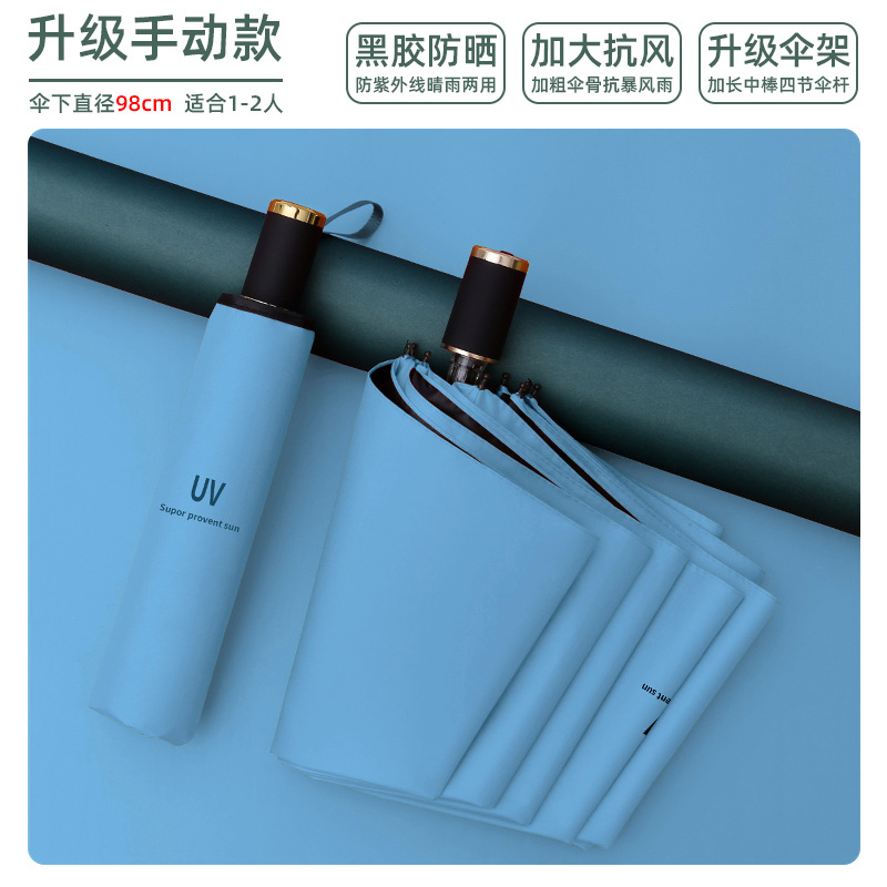 8-bone manual umbrella, sunny and rainy dual-use collection, light blue uv