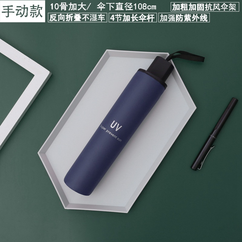10-bone manual umbrella no. plus-sized sunny and rainy dual-use navy blue