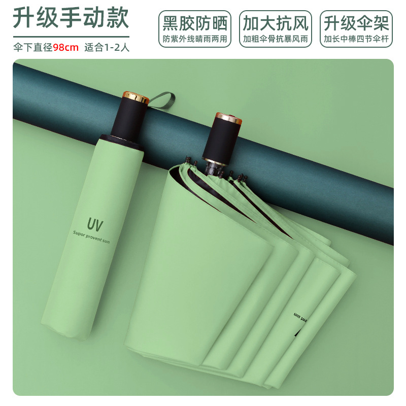 8-bone manual umbrella sunny and rainy dual-use collection matcha green uv