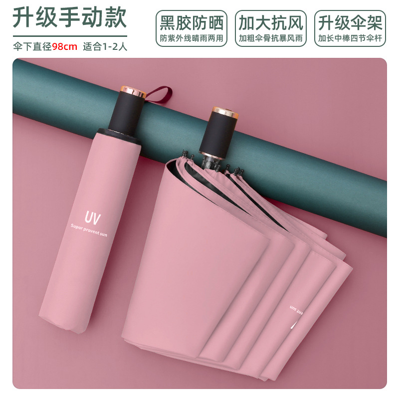8-bone manual umbrella, sunny and rainy dual-use collection, pink uv