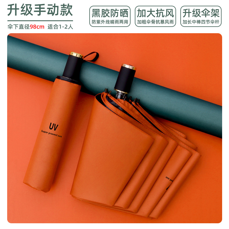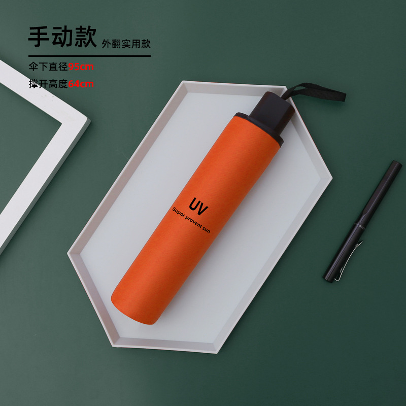 8-bone manual umbrella sunny and rainy dual-use collection orange uv