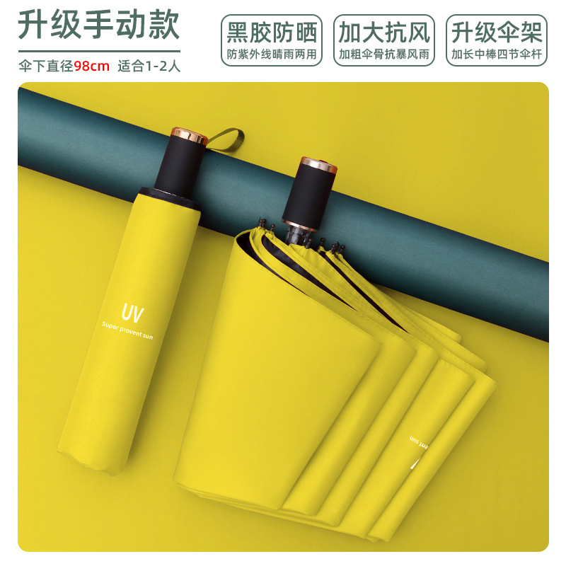 8-bone manual umbrella sunny and rainy dual-use collection yellow uv
