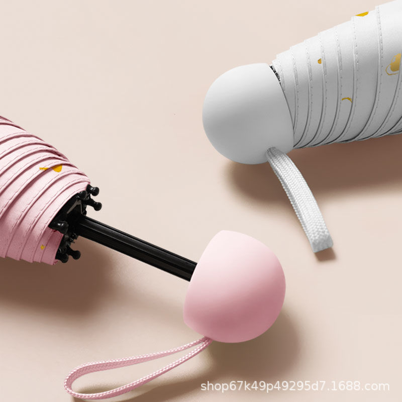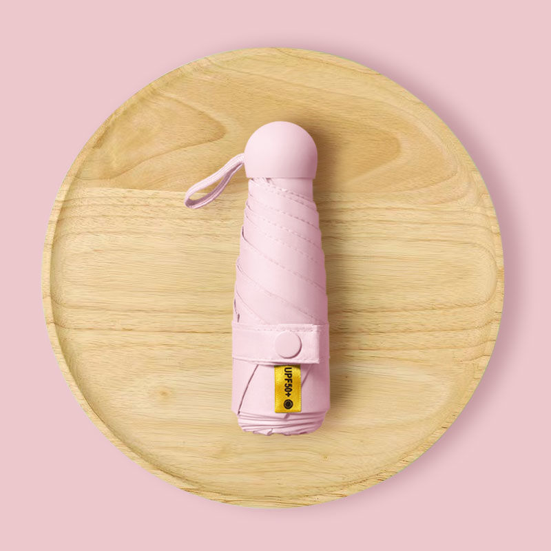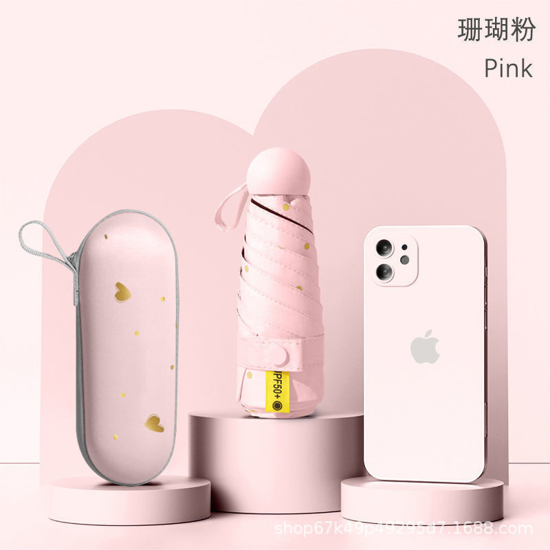 [solid color light pink] 50% off 6 bones black rubber umbrella + capsule box