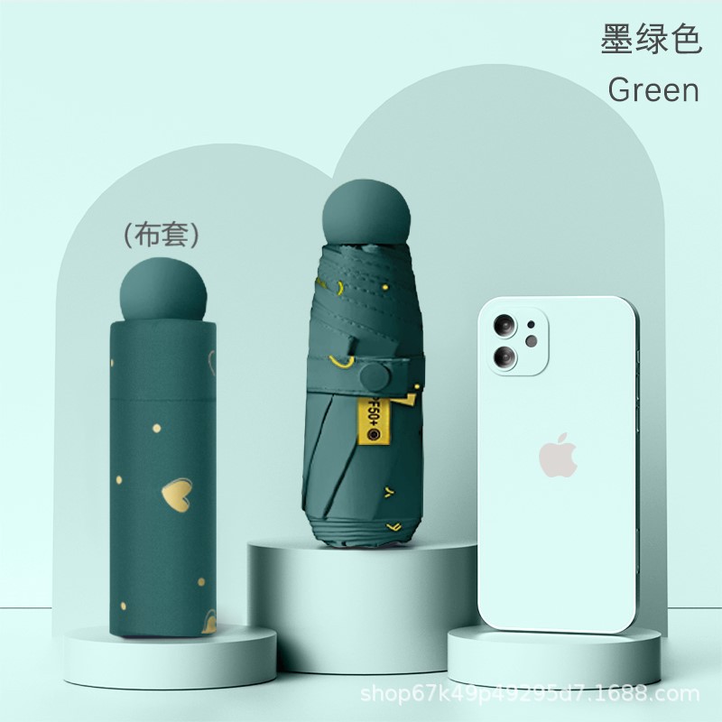 [love dark green] 50% off 8 bones black rubber umbrella + capsule box