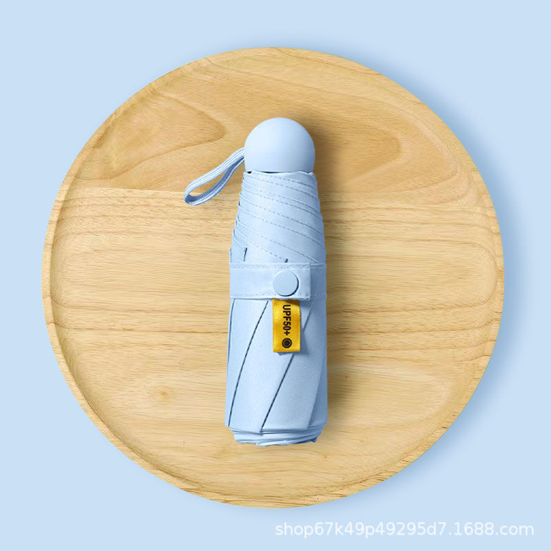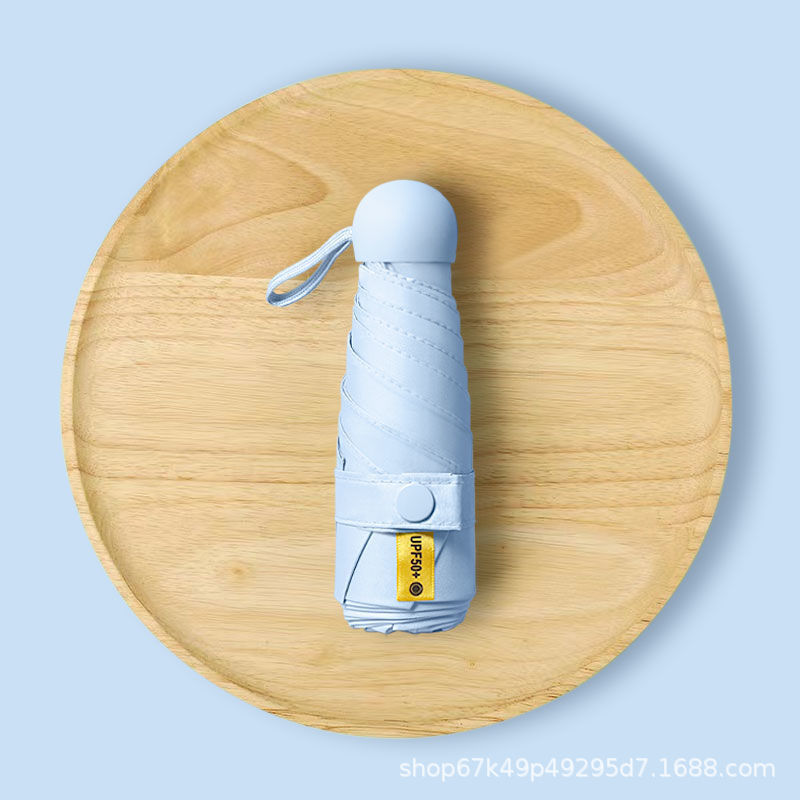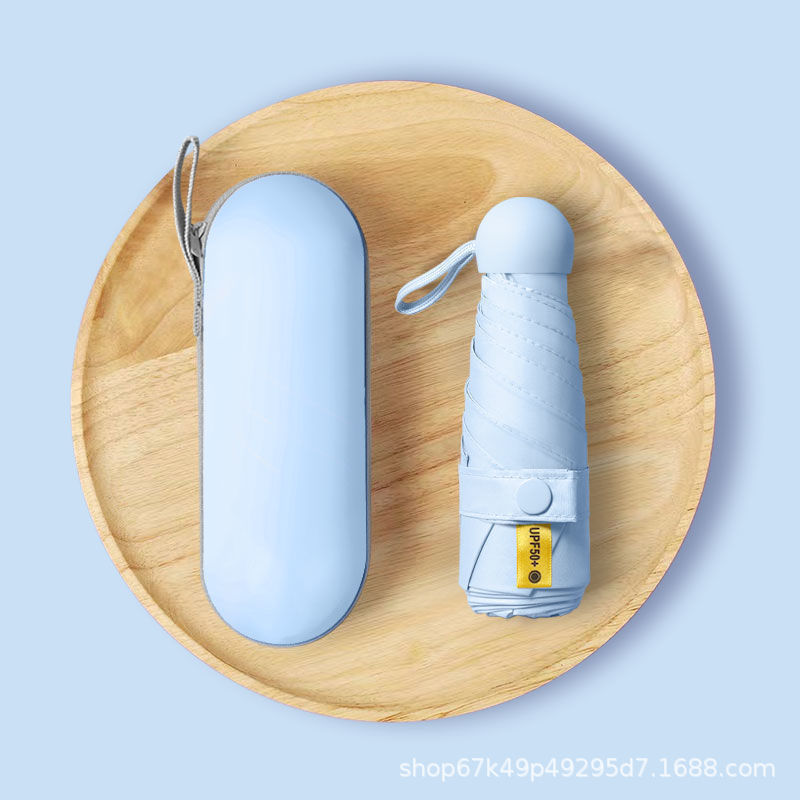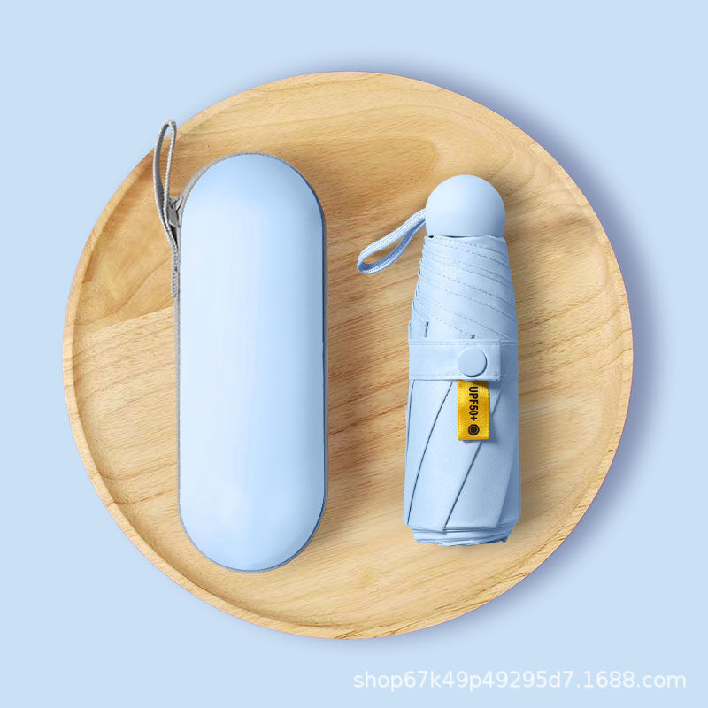 [solid color sky blue] 50% off 8 bones black rubber umbrella + capsule box