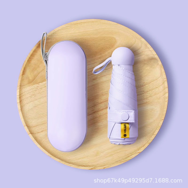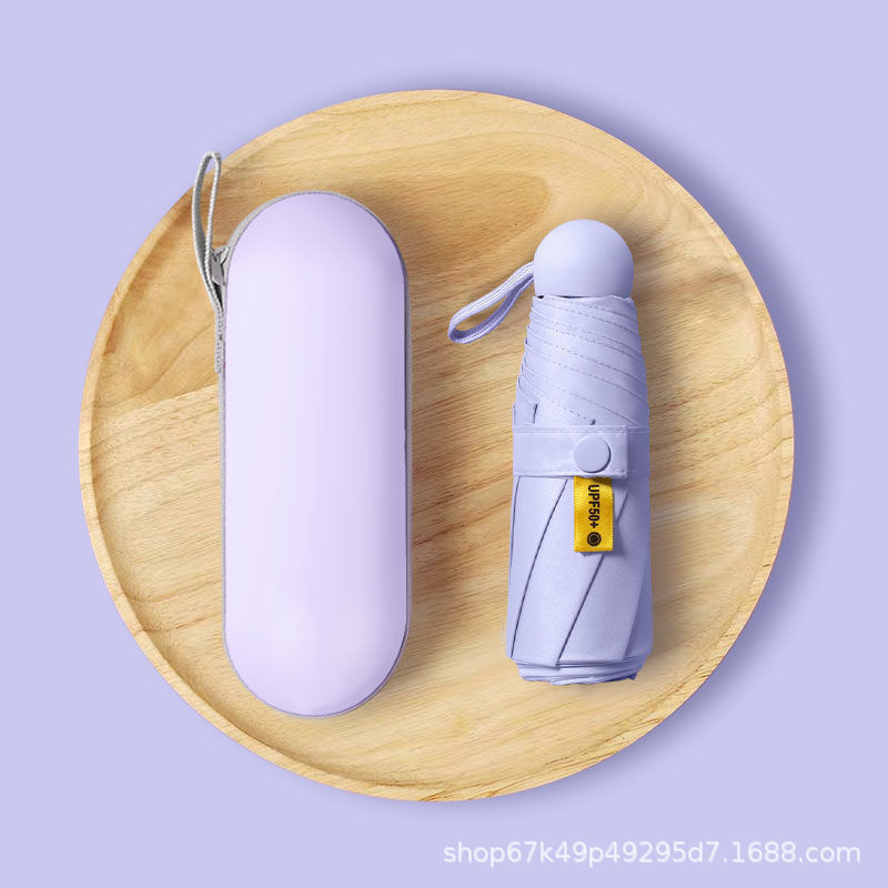 [solid color light purple] 50% off 6 bones black rubber umbrella + capsule box