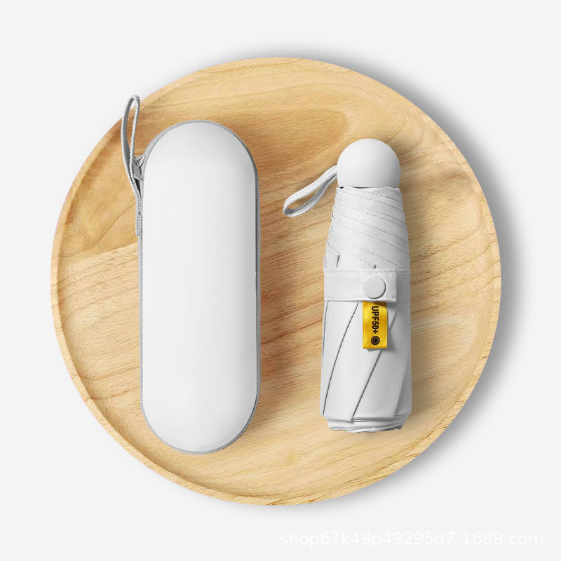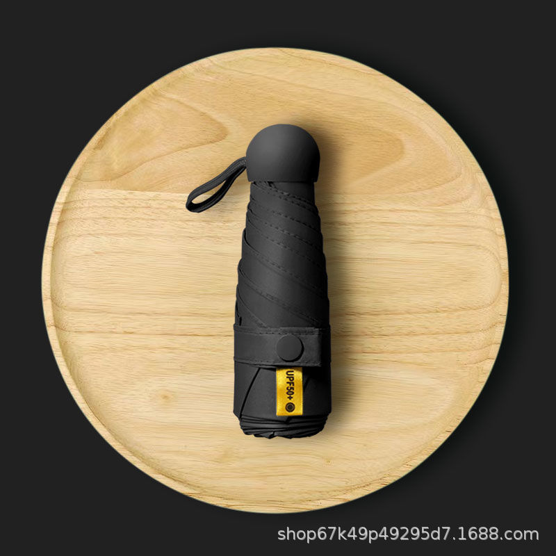 [solid color wutong rice] 50% off 6 bones black rubber umbrella + capsule box