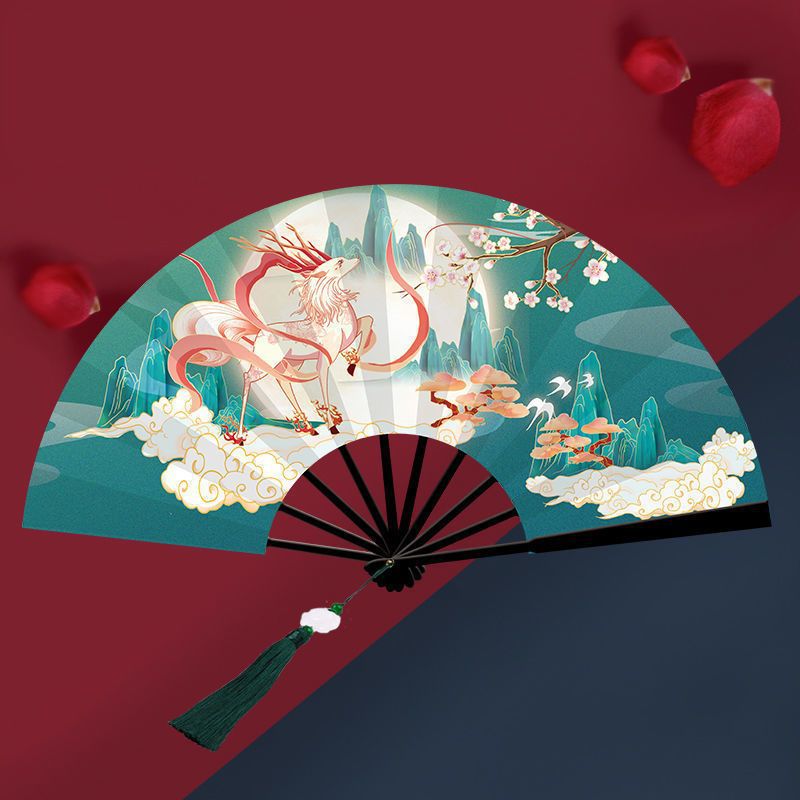 ♠9-inch firefox + jade dragon + tassel + fan bag♠