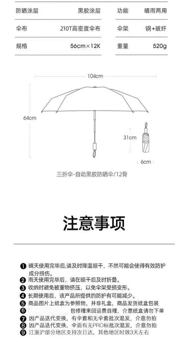 ♠haze-portable automatic 84k six bones] sunny umbrella♠