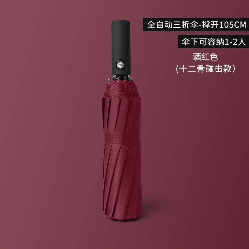 ♠12-bone automatic storm umbrella/wine red [wind resistant]]♠