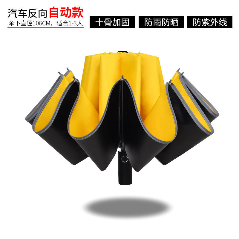 ♠yellow reinforcement 10 bone black glue fully automatic umbrella♠