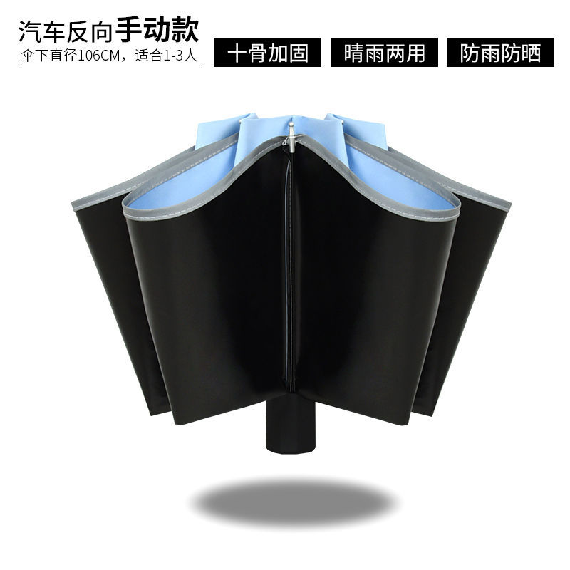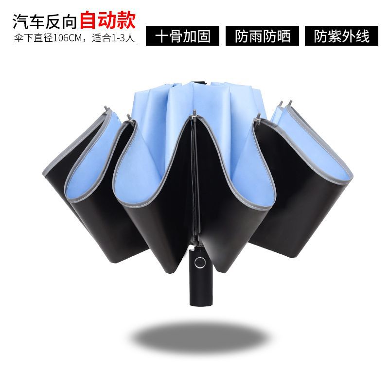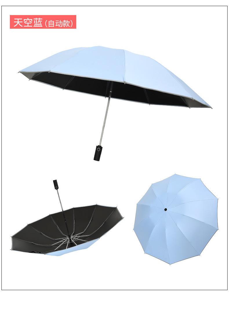 ♠sky blue reinforced 10 bone black glue fully automatic umbrella♠