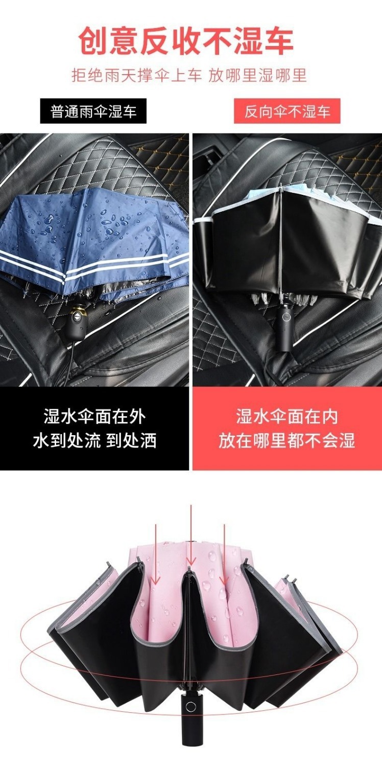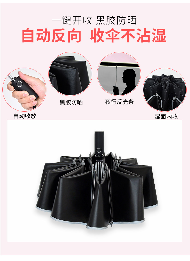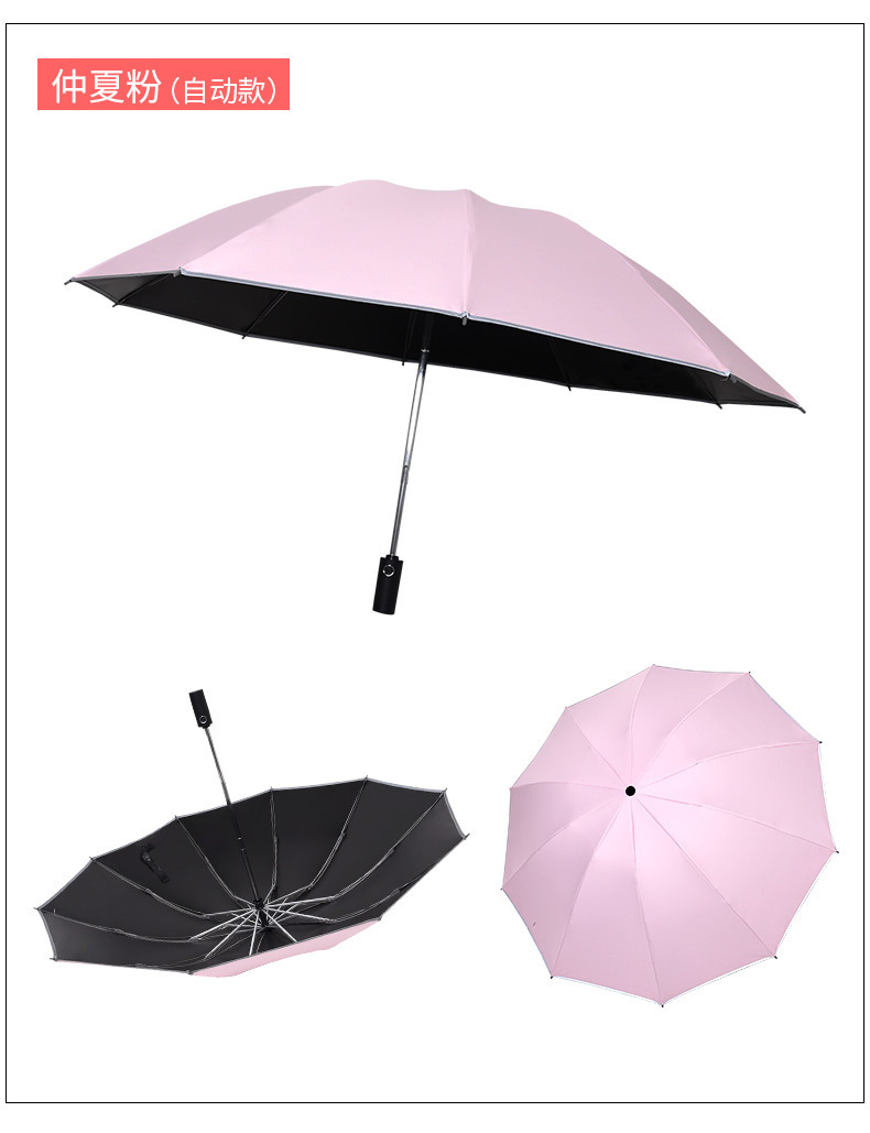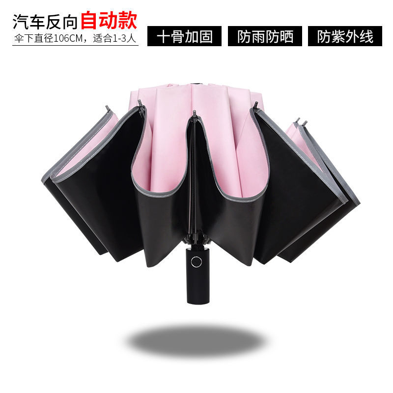 ♠pink reinforcement 10 bone black glue fully automatic umbrella♠