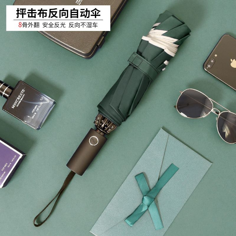 ♠dark green reinforcement 10 bone black glue fully automatic umbrella♠