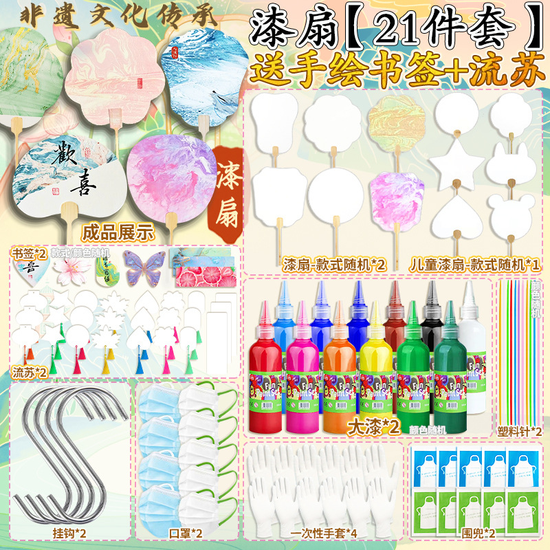 21 pieces of non-heritage paint/paint fan, hand-painted bookmark + tassel for free