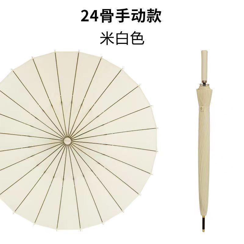 [creamy-white umbrella cloth thickening] manual 24-bone color matching handle