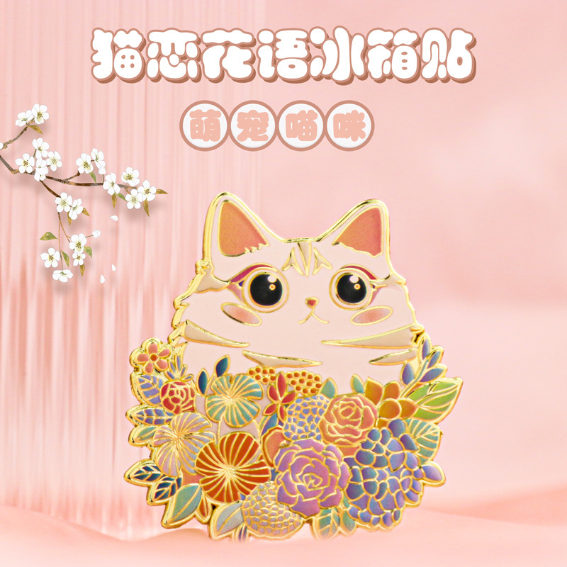 cat reading flower language refridgerator magnets