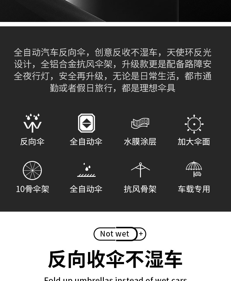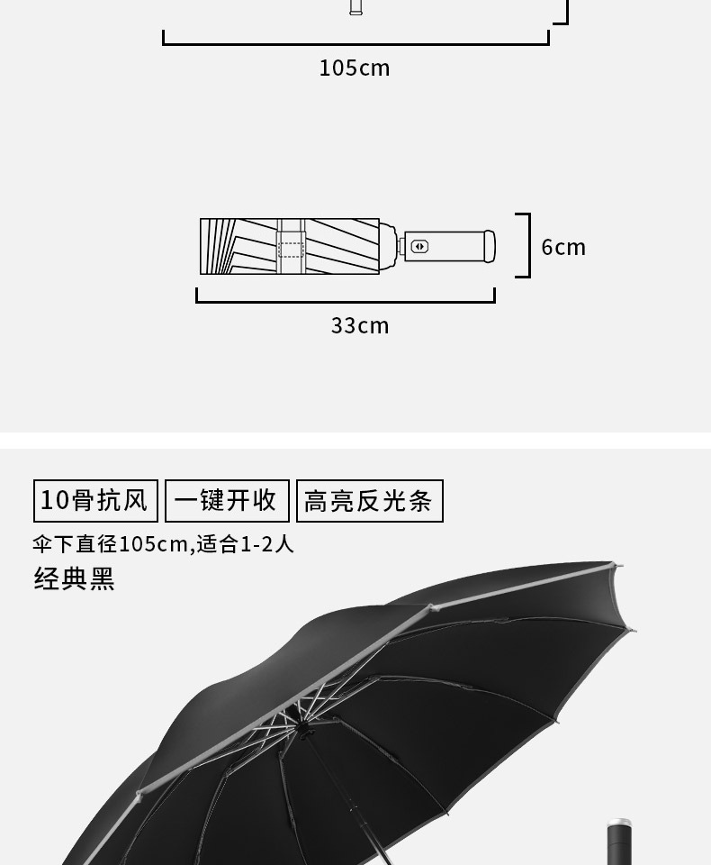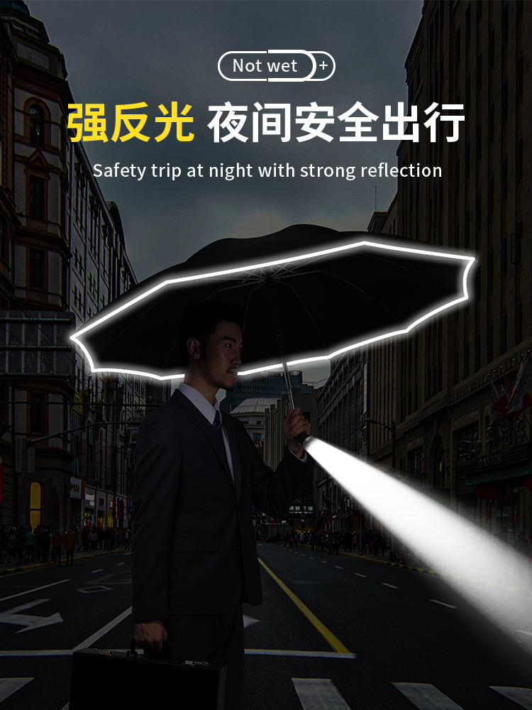 automatic] gift box] led light-reverse reflective-black glue sunny and rainy-10 bone plus-sized-black