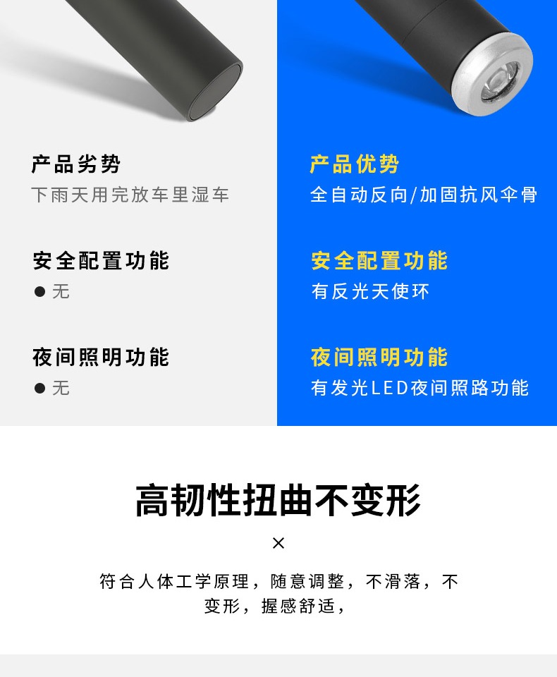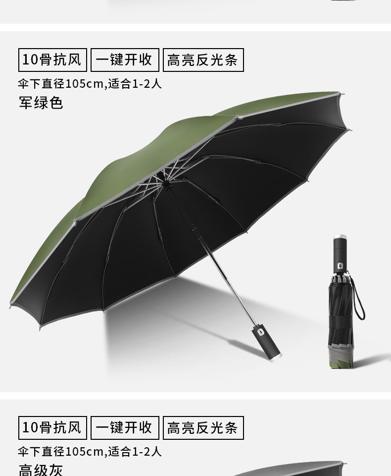 automatic] led light-reverse reflective-black glue sunny and rainy-10 bone plus-sized-black