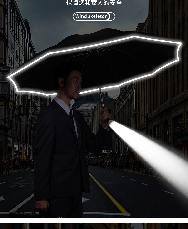 automatic] gift box] led light-reverse reflective-black glue sunny and rainy-10 bone plus-sized-sen