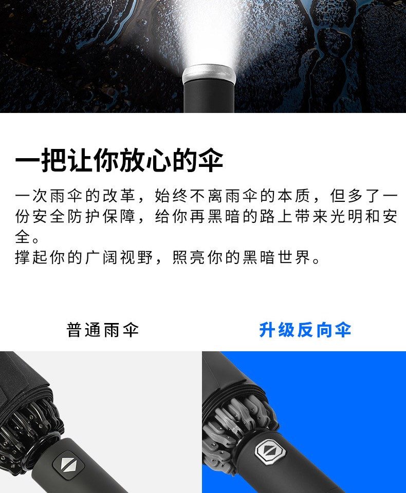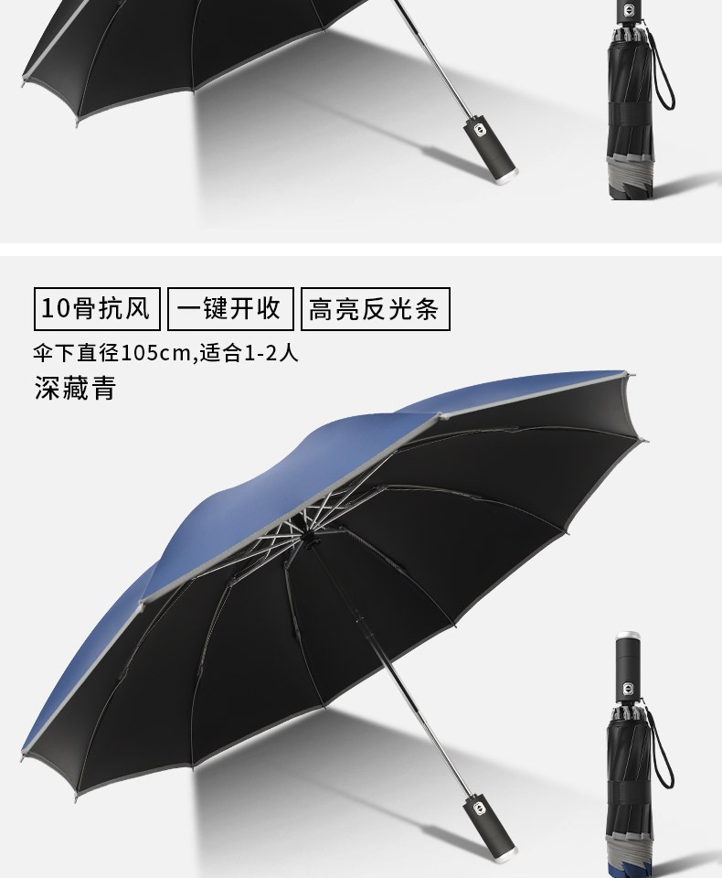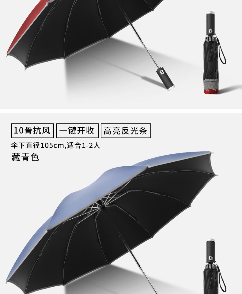 automatic] led light-reverse reflective-black glue sunny and rainy-10 bone plus-sized-navy blue