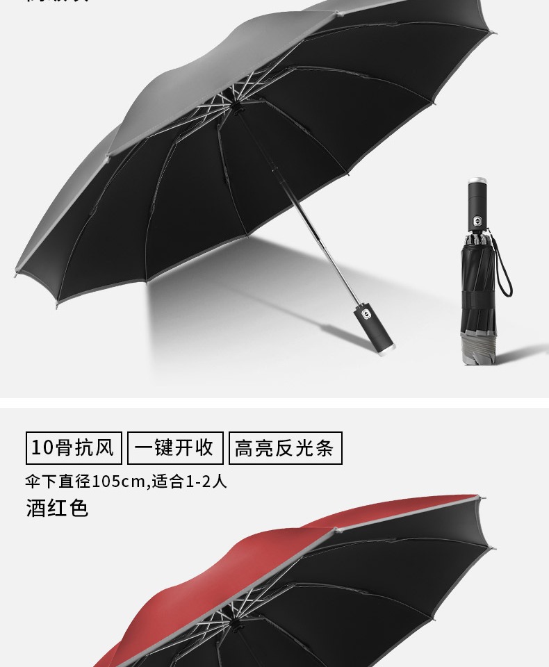 automatic] gift box] led light-reverse reflective-black glue sunny rain-10 bone plus-sized-wine