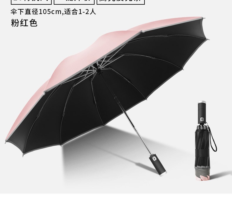 automatic] led light-reverse reflective-black glue sunny and rainy-10 bone plus-sized-light pink