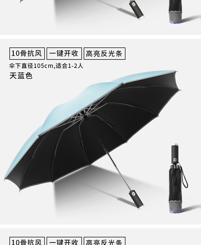 automatic] led light-reverse reflective-black glue sunny and rainy-10 bone plus-sized-light blue