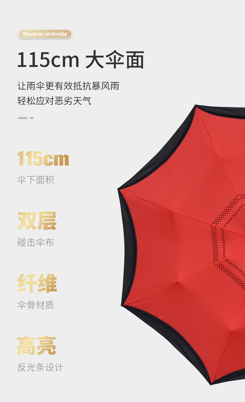 long handle automatic model (112cm) black and red-reflective edge