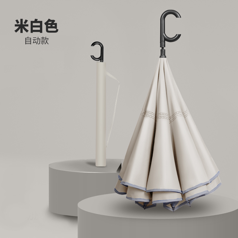 long handle automatic receiving (130cm) cream and coffee-colored-reflective edge