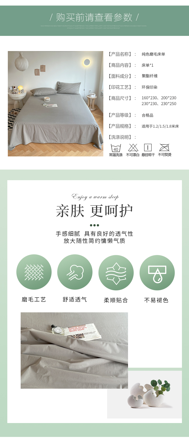 | 150 x200cm [single bed sheet] skin-friendly | CN¥ 25.6 | 701 piece available |