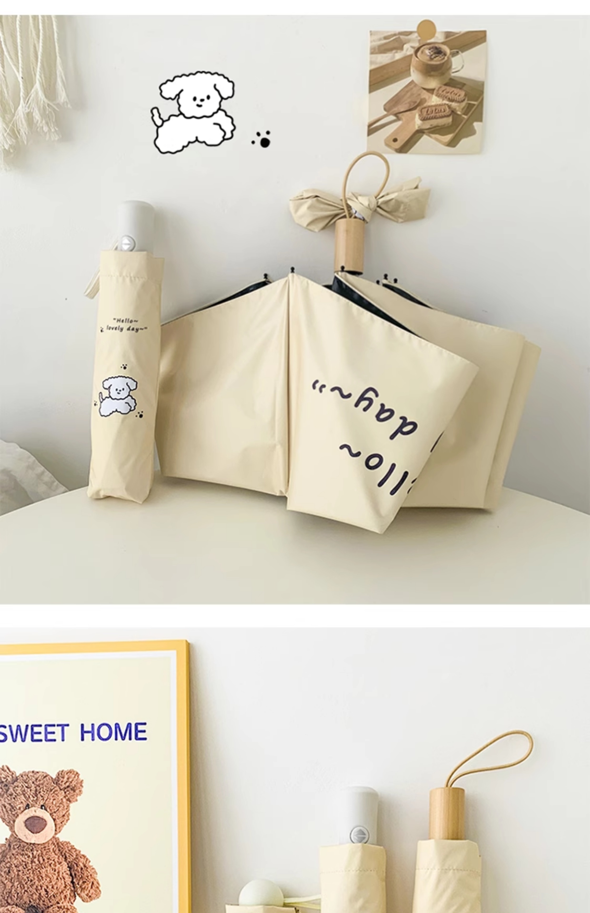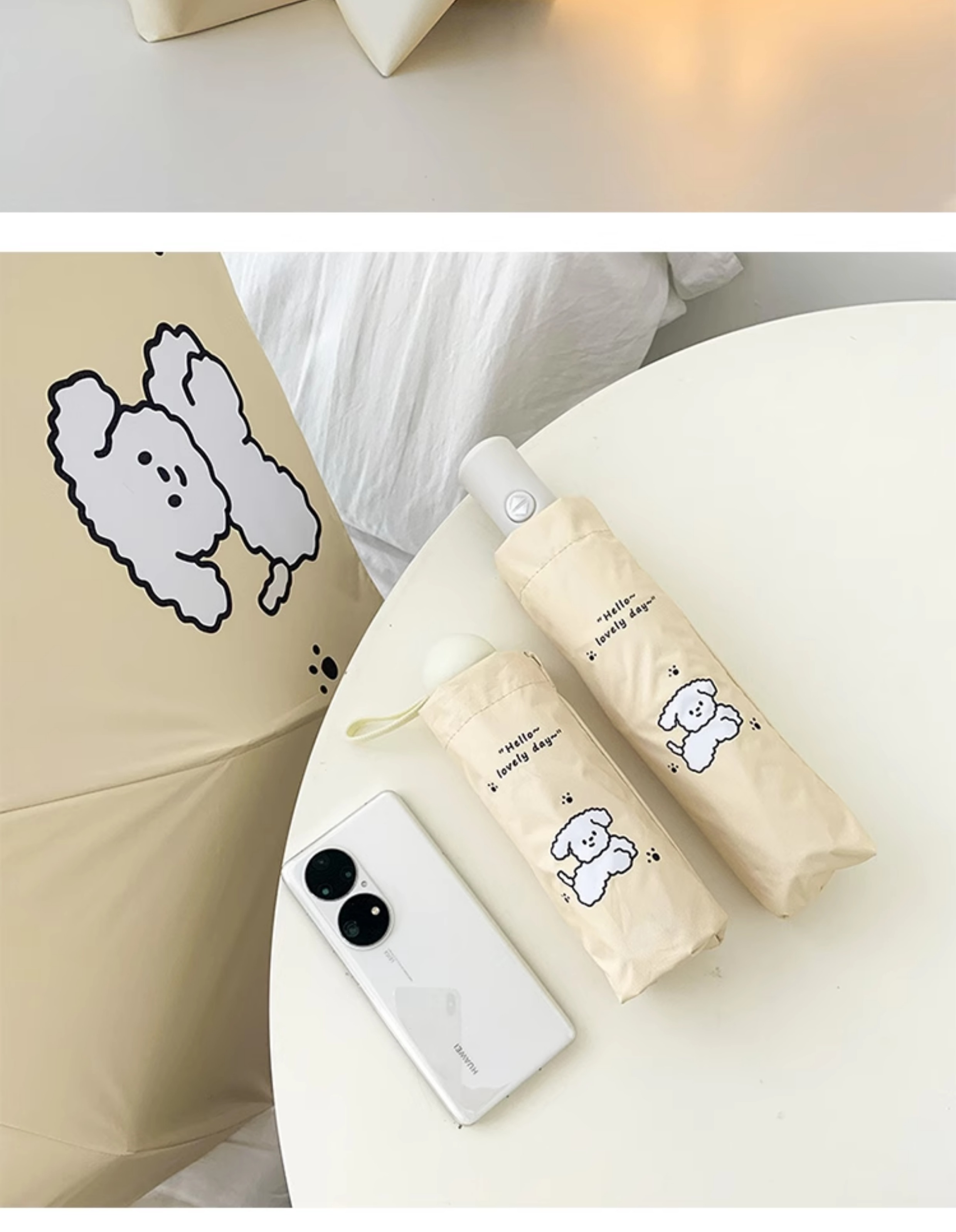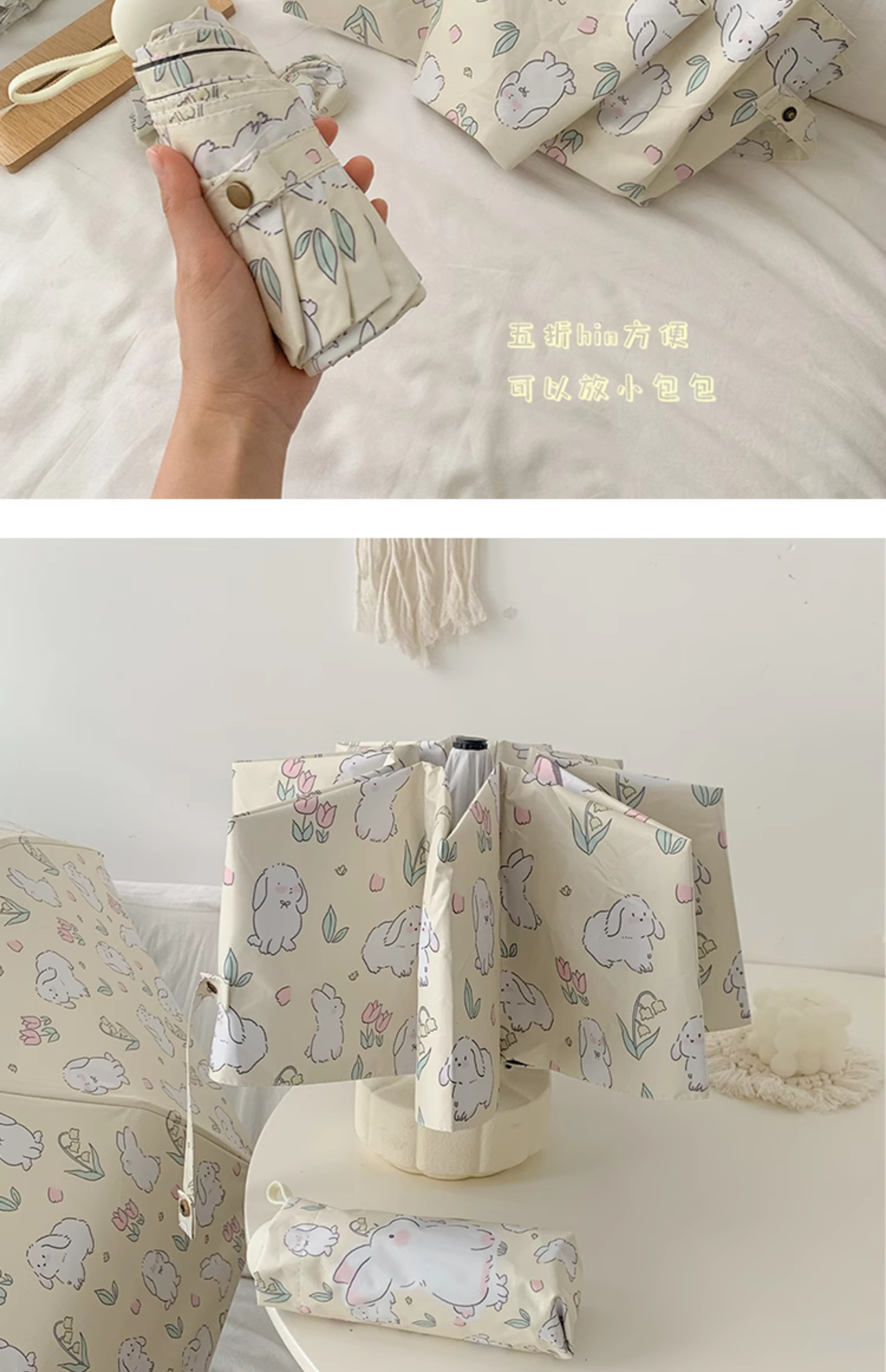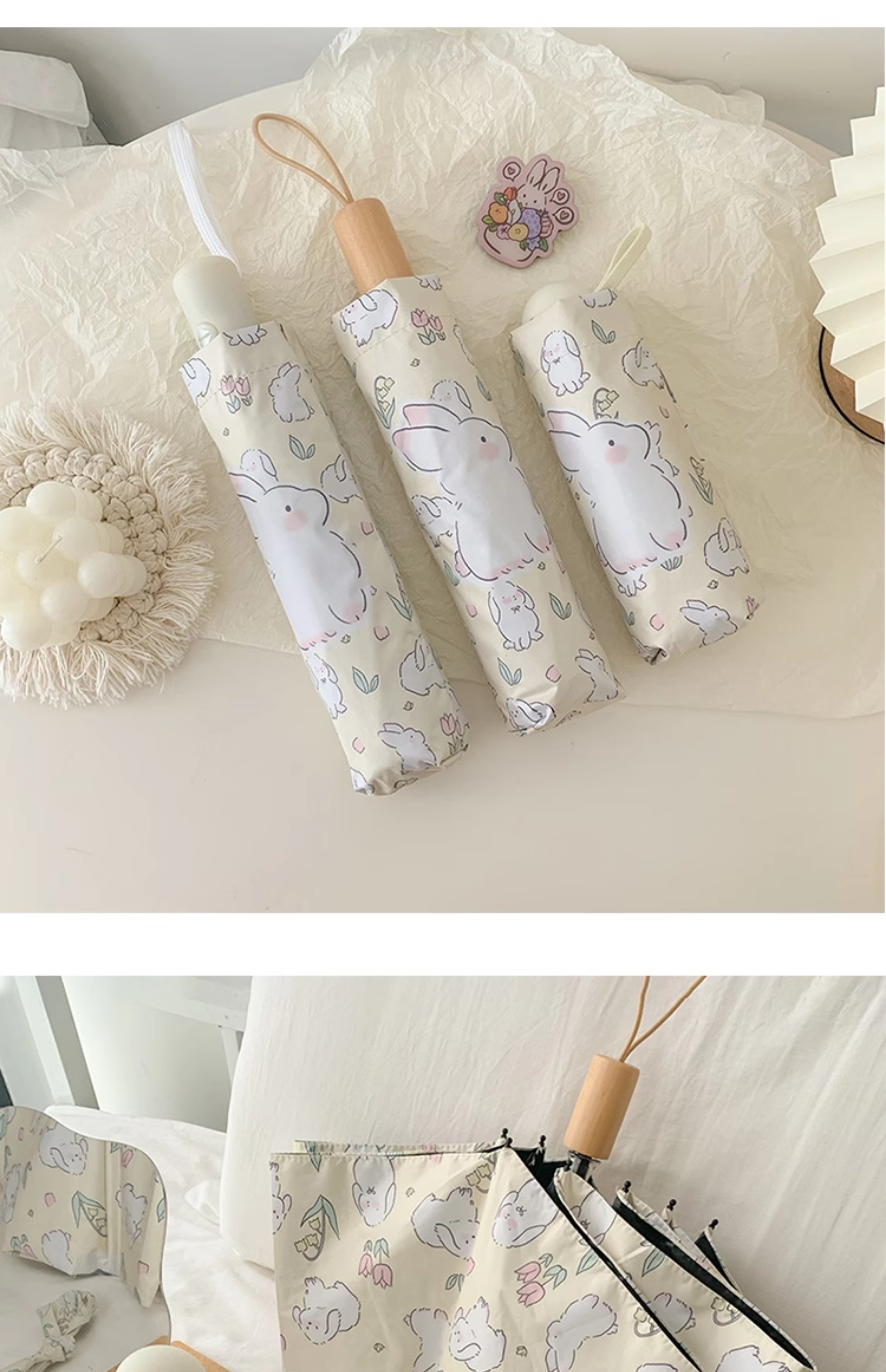 cream bunny self-opening umbrella