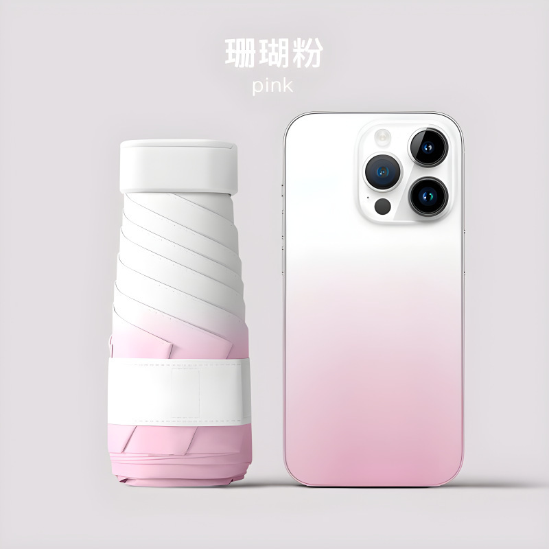 gradient flat five-fold umbrella-coral pink