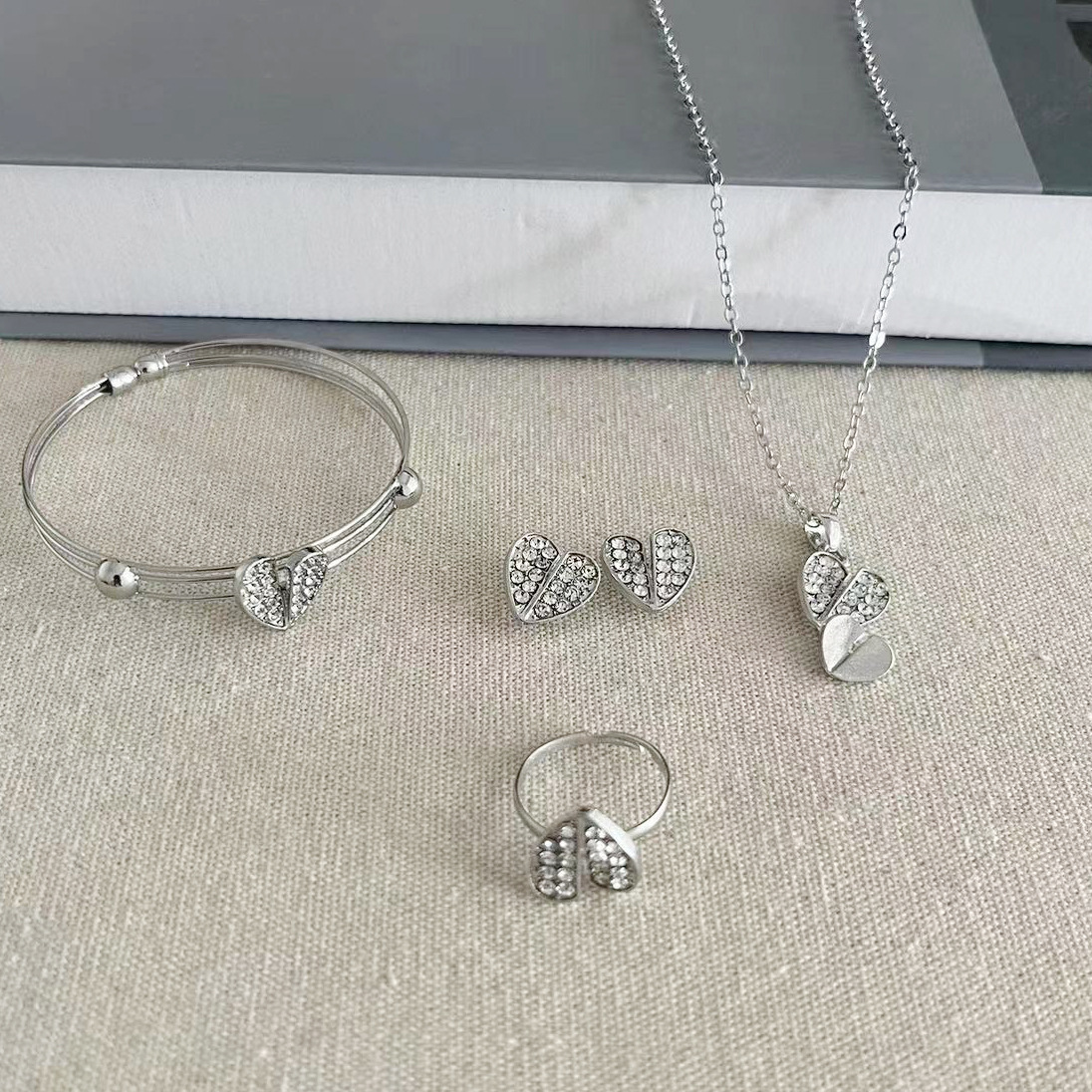 double layers loving heart suit silver
