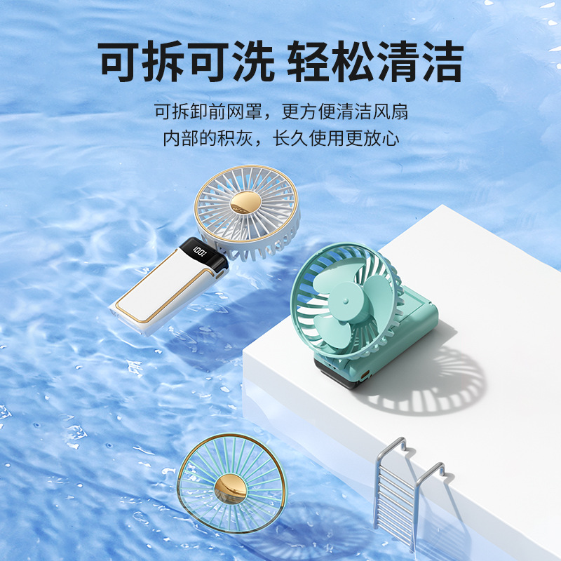 multifunctional five-gear digital display handheld fan [simple white]]