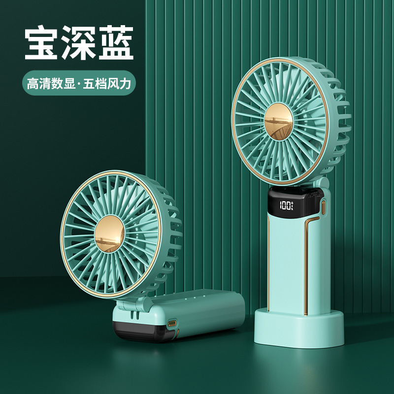 multifunctional five-gear digital display handheld fan [sapphire blue]]