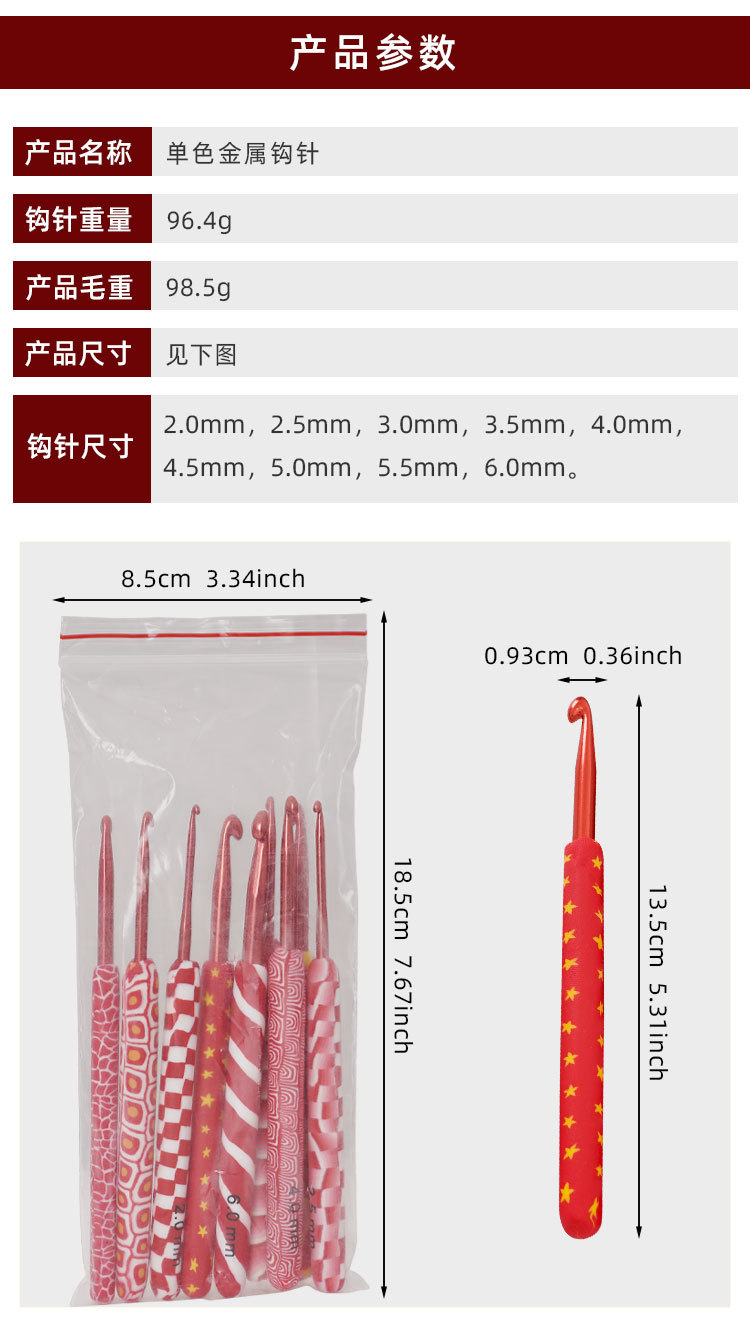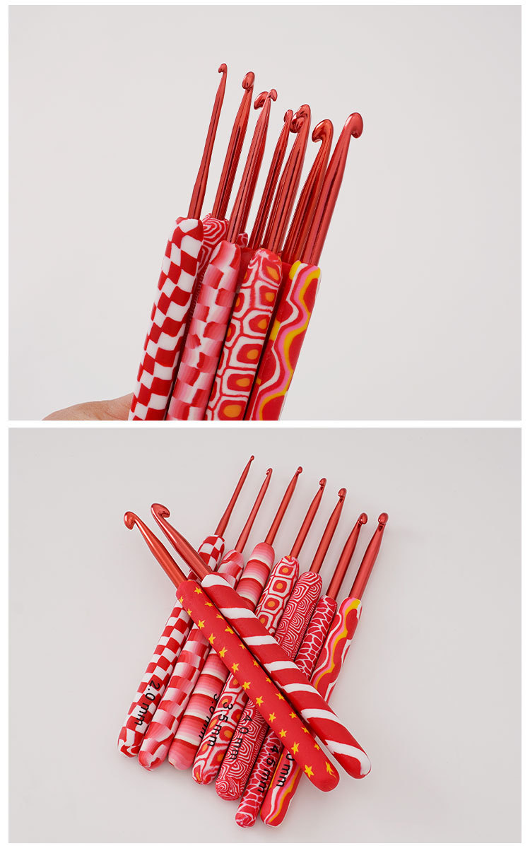 red polymer clay handle crochet 9 pcs