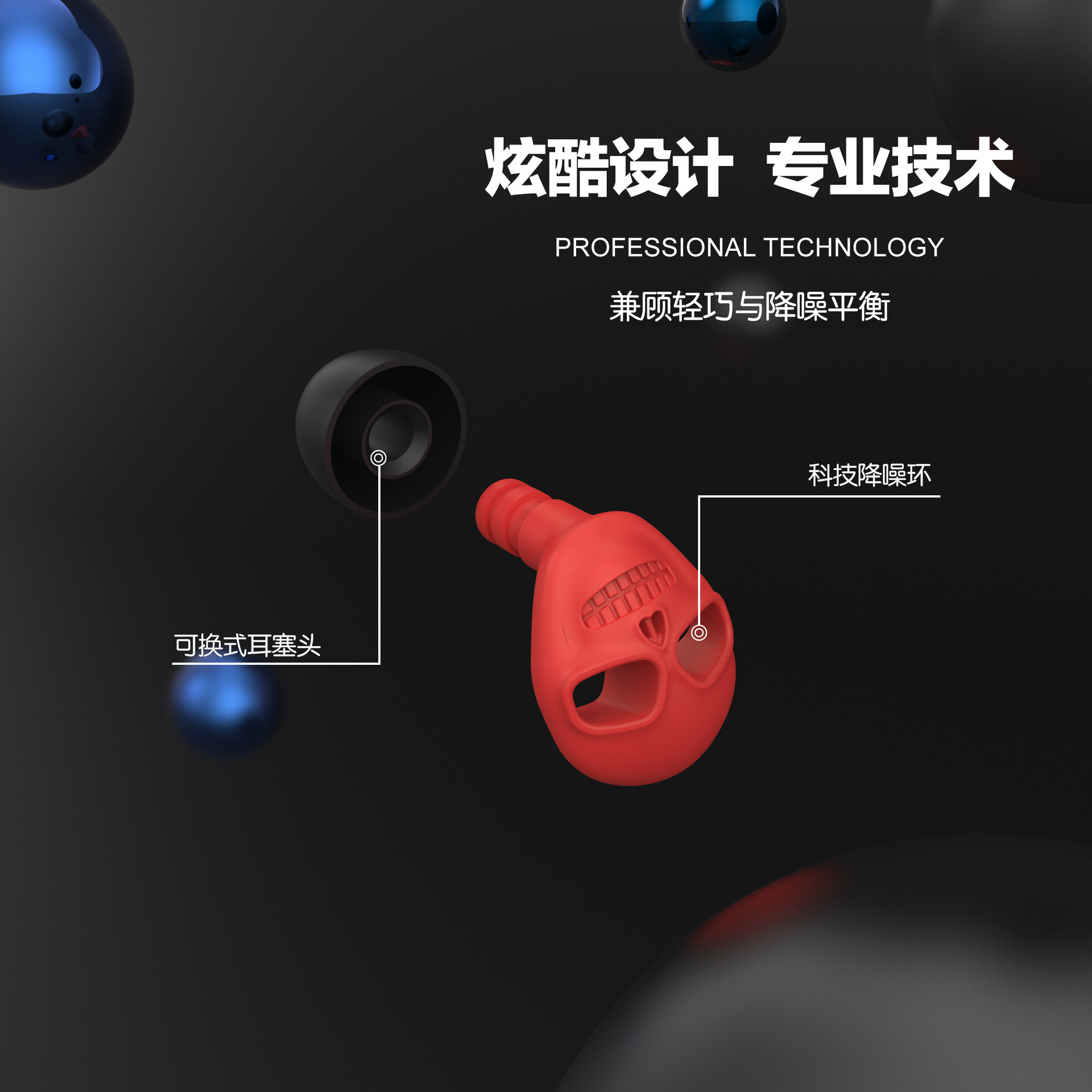 skull earplugs-red-high-end