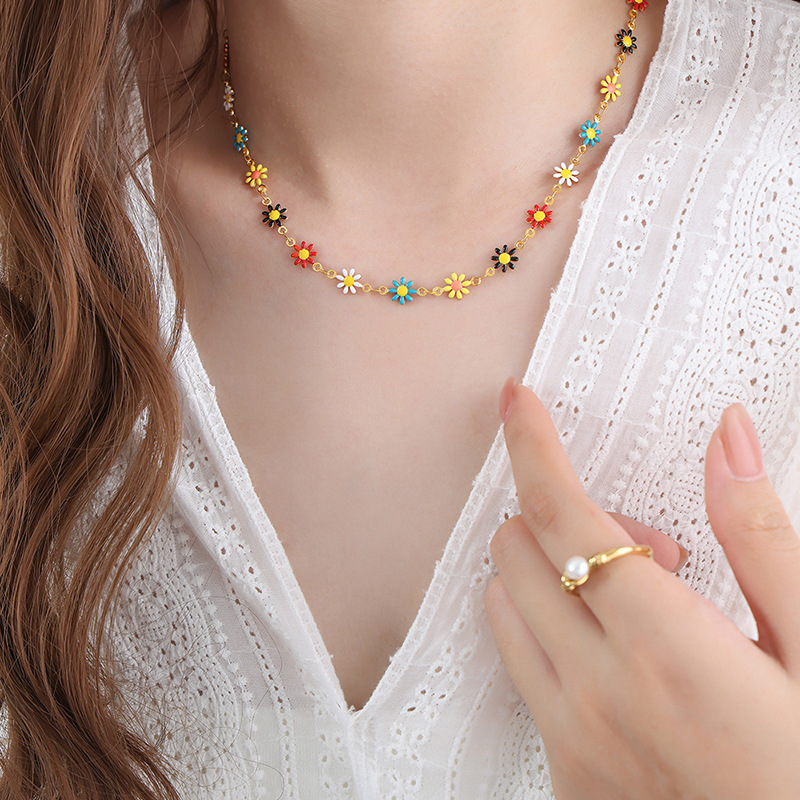 [xlh6191] colorful daisy necklace gold