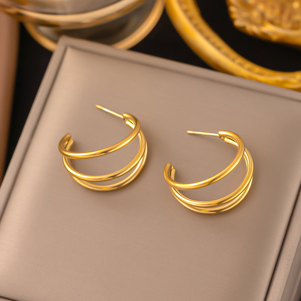 [ehg372] three-layer ring earrings gold