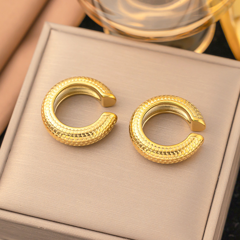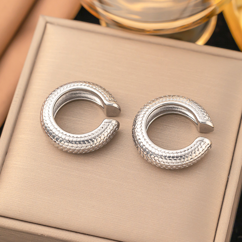 [ehg248] c- shaped scale earrings steel color